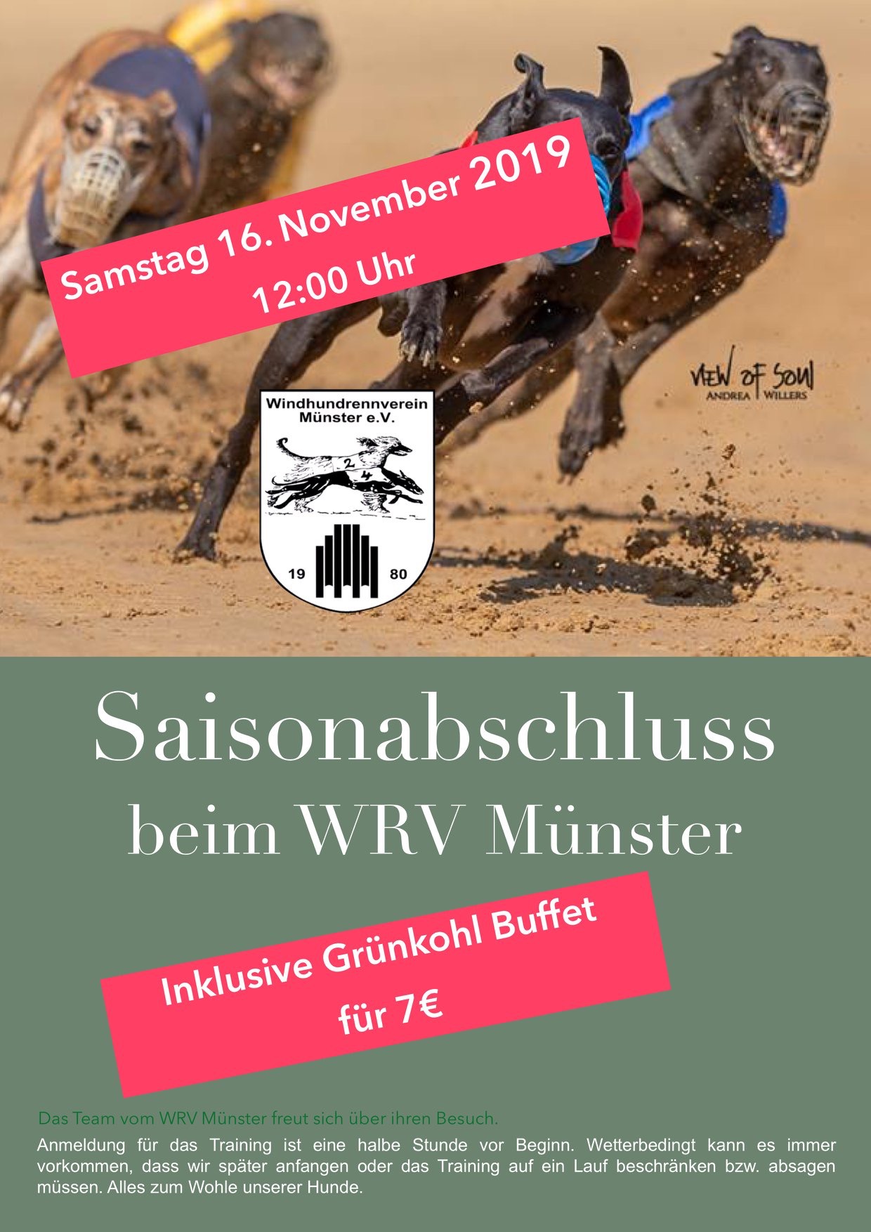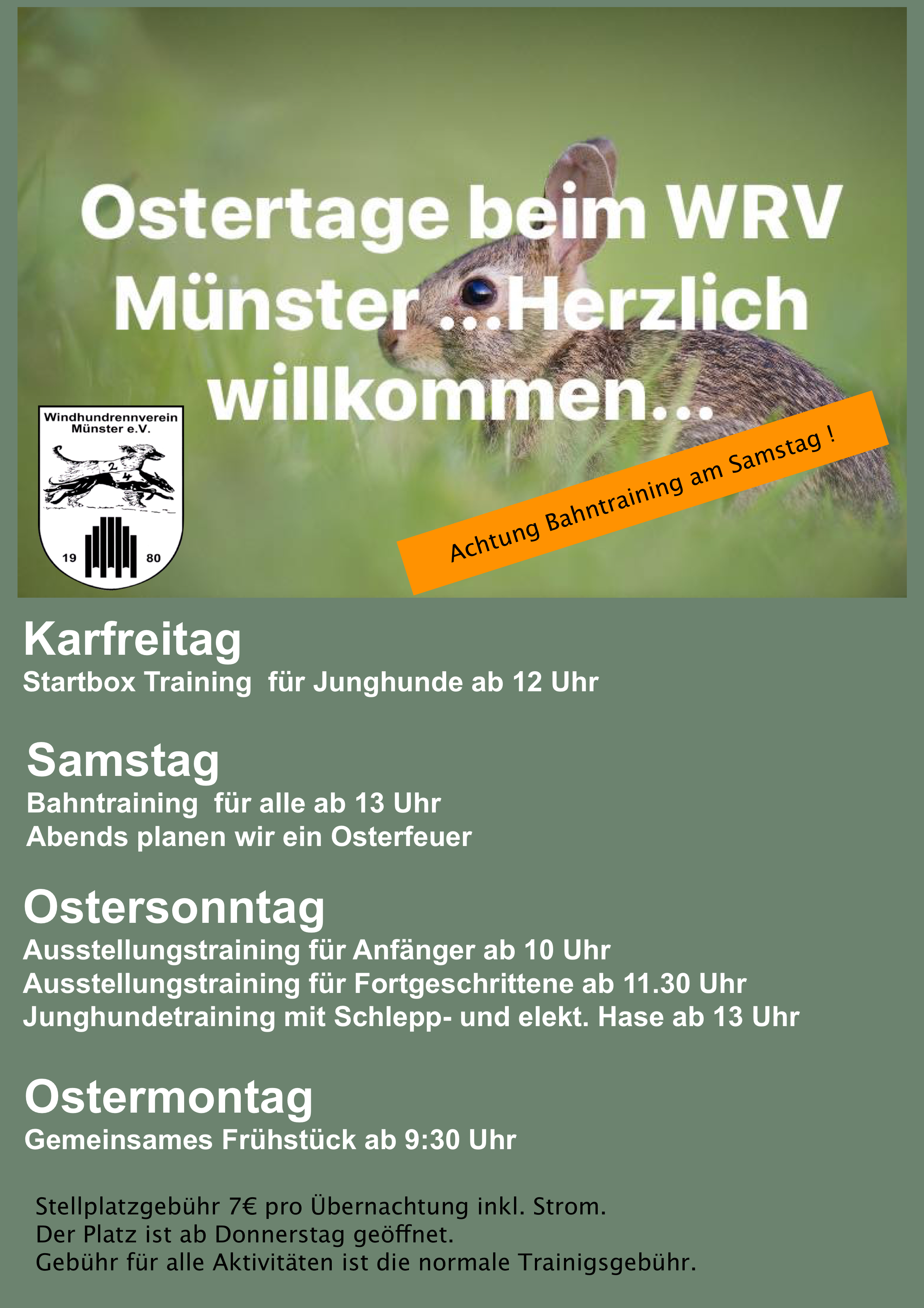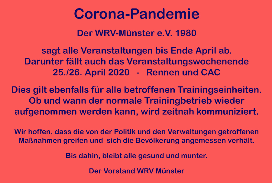 Kurzfristige Änderungen finden Sie immer aktuell beim WRV-Münster auf Facebook unter: