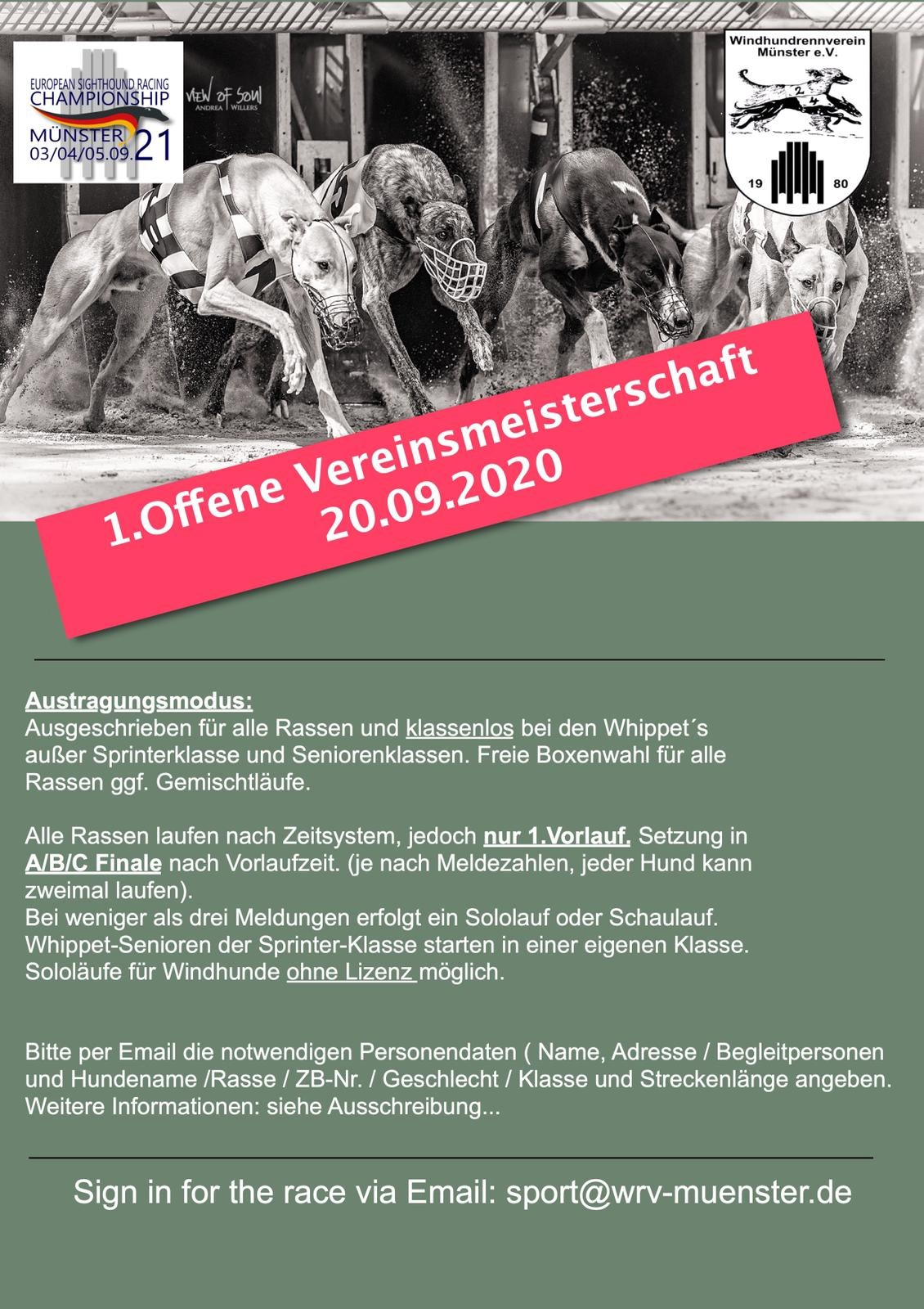 Kurzfristige Änderungen finden Sie immer aktuell beim WRV-Münster auf Facebook unter:
